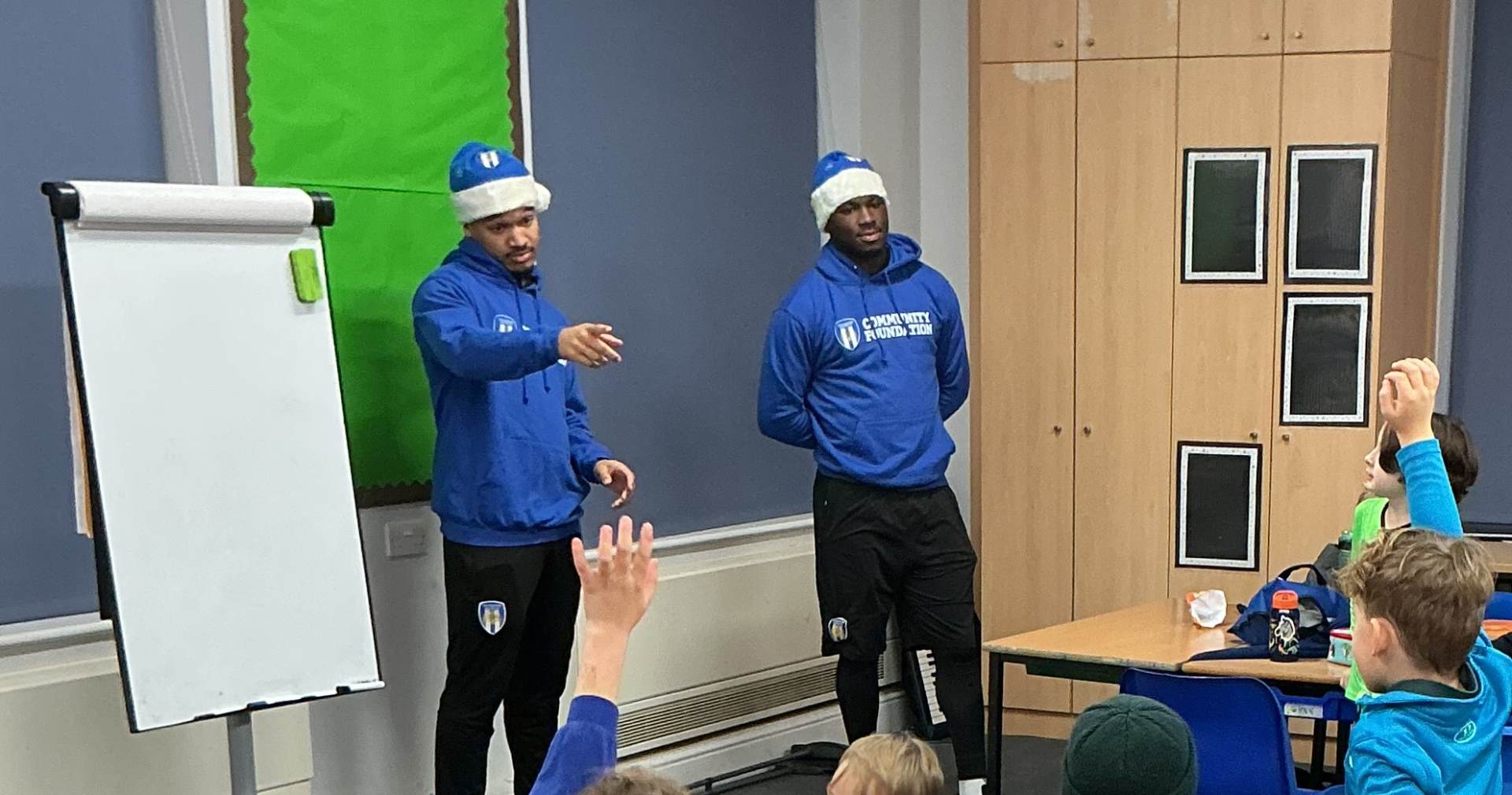 Our Key Stage 1 pupils had special guests during their football after school club this evening. They were joined by two Colchester United footballers who answered questions and spoke about their career as professional footballers.